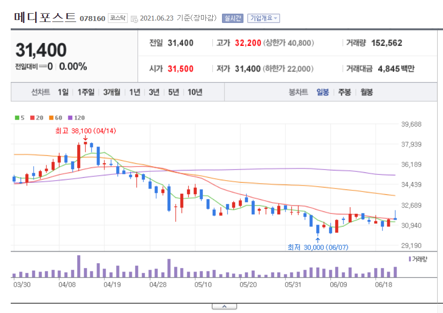 | 메드팩토 235980, 코스닥 NO.931 (0) | 2021.06.23 |