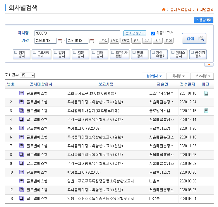 한국거래소 코스닥시장본부는 글로벌에스엠(900070)에 대해 현저한 시황변동(급등) 관련해 공시 규정상 공시할 대상의 존재 여부에 대한 조회공시를 18일 요구했다. 답변시한은 오는 19일 오후 6시